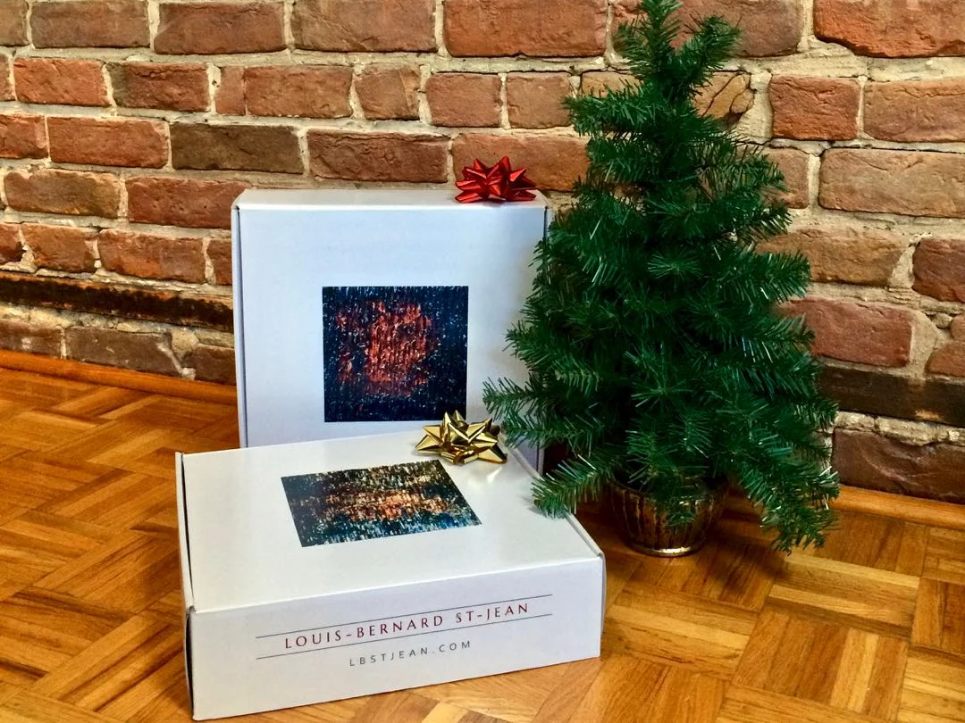 En créant une douzaine de tableaux et leur boîte-cadeau personnalisée, j'ai voulu miser sur l'emballage afin de rehausser cette expérience liée à l’anticipation et à l’excitation et ainsi l'associer à celle de recevoir un cadeau aussi unique qu’une œuvre d’art.